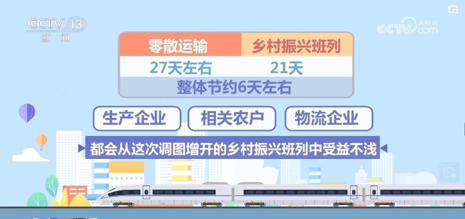 通過以上的對(duì)比不難看出,零散運(yùn)輸全流程需要27天左右,鄉(xiāng)村振興班列需要21天,整體節(jié)約6天左右。不管是對(duì)于生產(chǎn)企業(yè)以及相關(guān)農(nóng)戶,還是對(duì)于物流企業(yè),都會(huì)從這次調(diào)圖增開的鄉(xiāng)村振興班列中受益不淺。