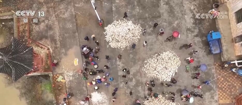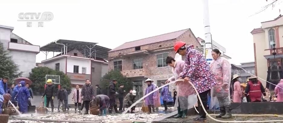 日前,在江西吉安永新縣高市鄉(xiāng)塘內(nèi)村,一場(chǎng)分魚(yú)活動(dòng)正在舉行。村里的男女老少齊上陣,將剛剛打撈上來(lái)的魚(yú)鋪滿廣場(chǎng),按照種類和大小分好,一起共享收獲。