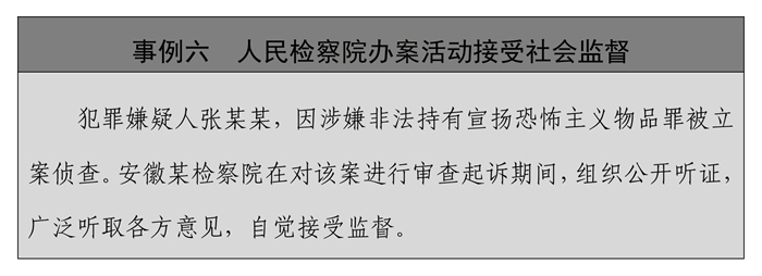 ——拓寬監(jiān)督渠道。中國執(zhí)法司法辦案機(jī)關(guān)持續(xù)拓寬監(jiān)督渠道,通過多種方式強(qiáng)化社會(huì)監(jiān)督,不斷增強(qiáng)執(zhí)法司法透明度,防止執(zhí)法權(quán)、司法權(quán)被濫用。人民法院通過審判流程信息公開、裁判文書公開、執(zhí)行信息公開、庭審公開等加大司法公開力度,及時(shí)公布法院審判、執(zhí)行工作情況。人民檢察院推行檢務(wù)公開,依法公開與檢察職權(quán)相關(guān)的活動(dòng)和事項(xiàng),并充分運(yùn)用現(xiàn)代化信息手段,建立檢務(wù)公開信息平臺(tái),設(shè)置電子顯示查詢?cè)O(shè)備,開通網(wǎng)站、網(wǎng)頁等,方便檢務(wù)信息查詢。公安機(jī)關(guān)推行警務(wù)活動(dòng)公開,行政處罰遵循公開原則,執(zhí)法過程、處罰結(jié)果自覺接受社會(huì)和公民的監(jiān)督。司法行政機(jī)關(guān)推行獄務(wù)公開,將監(jiān)獄執(zhí)法工作的條件、程序、結(jié)果依法向社會(huì)公開,加強(qiáng)監(jiān)獄工作的規(guī)范化、制度化、法治化建設(shè),規(guī)范執(zhí)法行為。