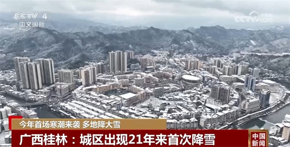 從21日到22日,廣西桂林市自北向南出現(xiàn)了一次大范圍的降雪天氣過(guò)程,桂林市城區(qū)更是出現(xiàn)21年來(lái)的首場(chǎng)降雪。