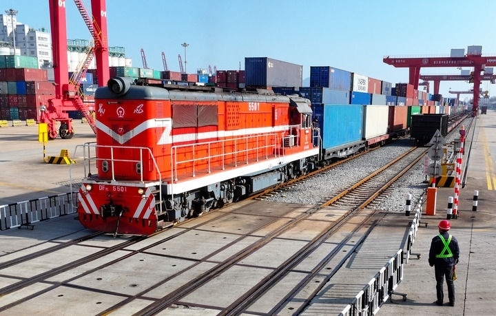 水路大進大出,鐵路風(fēng)馳電掣。元旦當(dāng)天,連云港新年開行的首趟中歐班列載著汽車配件、家用電器等,從中哈物流合作基地出發(fā),駛往中亞國家;同日,南通海安物流基地內(nèi),一列滿載貨物的班列鳴笛啟程開往越南河內(nèi)。有去有回,不久之后,“鋼鐵駝隊”會把來自歐洲、中亞和東南亞的機械、木材等運回中國,開啟新一輪國際循環(huán)。