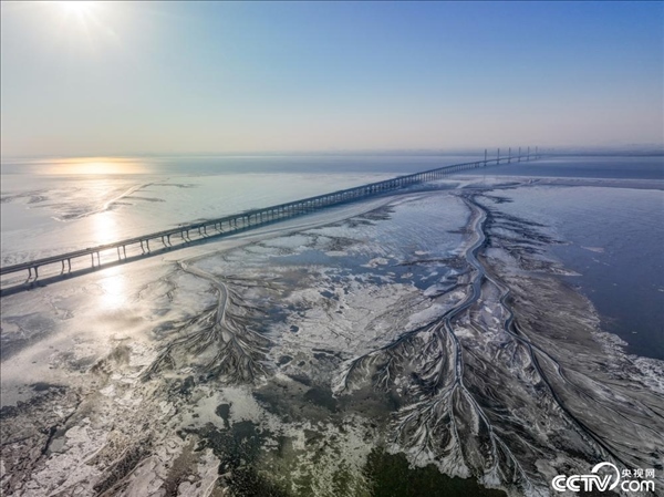 1月24日,浙江省嘉興市寒潮來(lái)襲,錢塘江結(jié)冰,灘涂上出現(xiàn)巨大的“冰雪潮汐樹”。