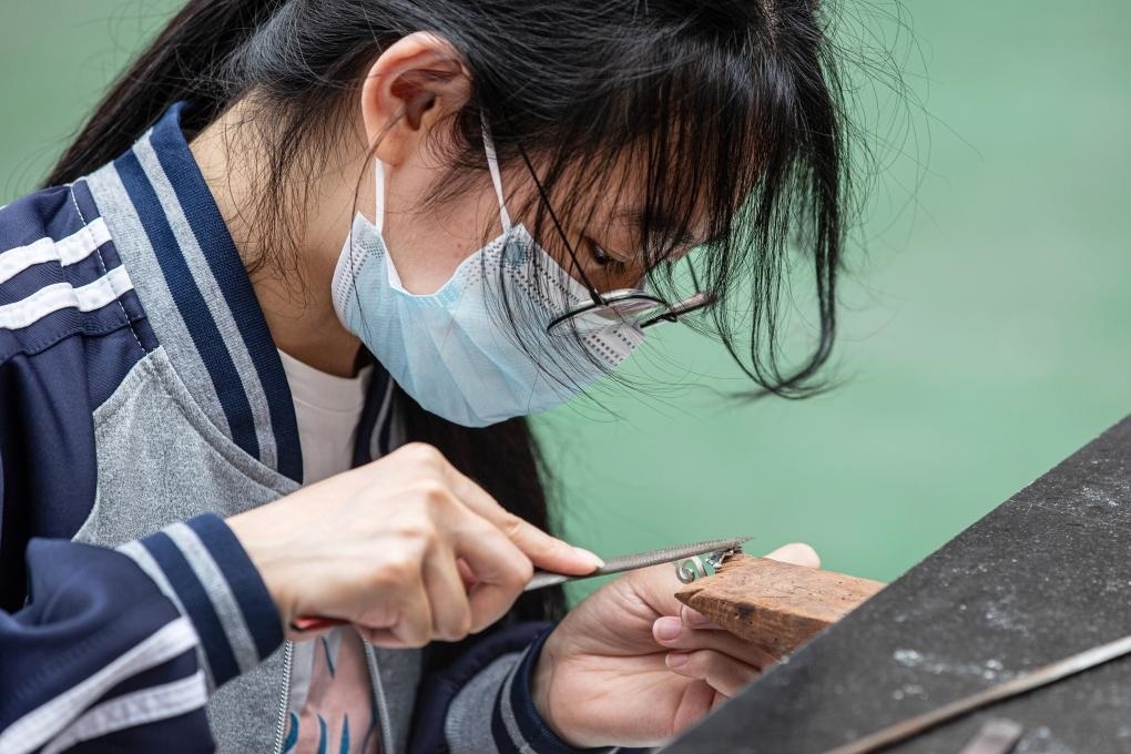 ?2023年11月29日,山東昌樂(lè)技師學(xué)院首飾設(shè)計(jì)與制作專業(yè)師生在練習(xí)專業(yè)技能。新華社記者張力元 攝