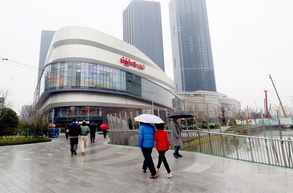 市民走向上海市普陀區(qū)真如環(huán)宇城MAX購物中心(2024年1月20日攝)。新華社記者 方喆 攝