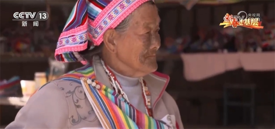 現(xiàn)在獨龍江鄉(xiāng),近千位獨龍族婦女和她一樣,在用傳統(tǒng)的方式編織著走向世界的獨龍?zhí)海钗氖四棠叹褪瞧渲兄?,她是目前獨龍族僅有的17位文面女中的一位。當(dāng)記者找到她時,老奶奶正在熟練得玩手機(jī)。自從2022年5G網(wǎng)絡(luò)覆蓋了獨龍江鄉(xiāng)的6個行政村后,李文仕奶奶除了務(wù)農(nóng)織布、唱歌跳舞,還培養(yǎng)了一個新的愛好,就是網(wǎng)上沖浪。