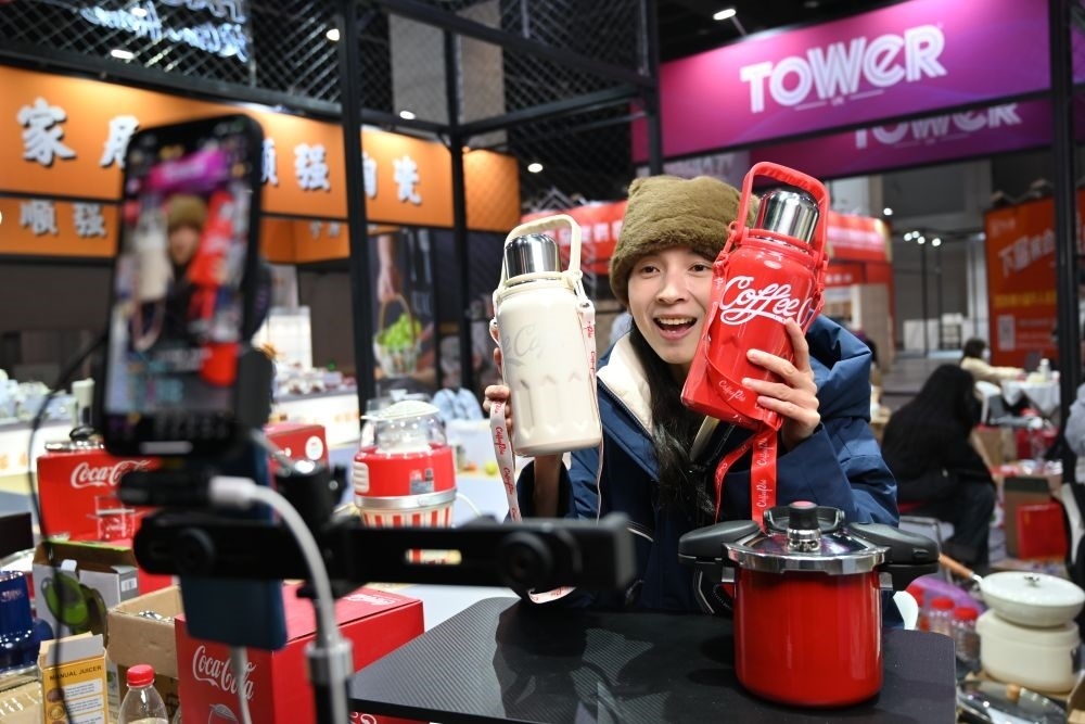 2023年12月21日,浙江省永康市一家保溫杯企業(yè)電商部門的工作人員通過直播推介保溫杯產品。新華社記者 韓傳號 攝