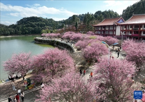 近日,位于福建省福州市晉安區(qū)壽山鄉(xiāng)的千年古剎林陽(yáng)寺500余株梅花美麗綻放,吸引眾多游客前來(lái)賞梅游玩。