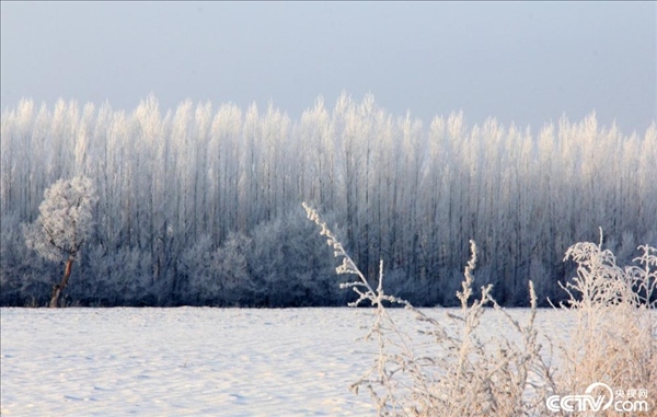 2024年1月31日,新疆塔城,裕民縣出現(xiàn)大面積霧凇景觀,樹(shù)木銀裝素裹,玉樹(shù)瓊枝,景色迷人。
