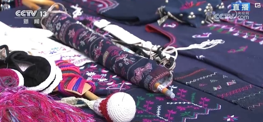 “過春節(jié),穿新衣?!泵褡宕汤C一針一線繡出來了山川湖海、日月繁星,不僅有帽子、衣服,還能做成杯墊、雨傘等,搭配起來都很好看。