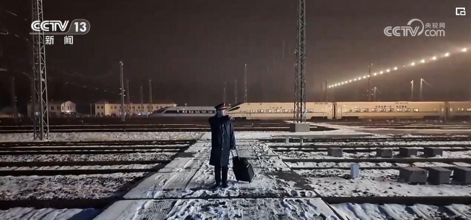 趁著茫茫夜色,動車組司機張洋從動車所出勤,執(zhí)行當(dāng)天高鐵第一列“熱滑除冰車”的執(zhí)勤任務(wù)。