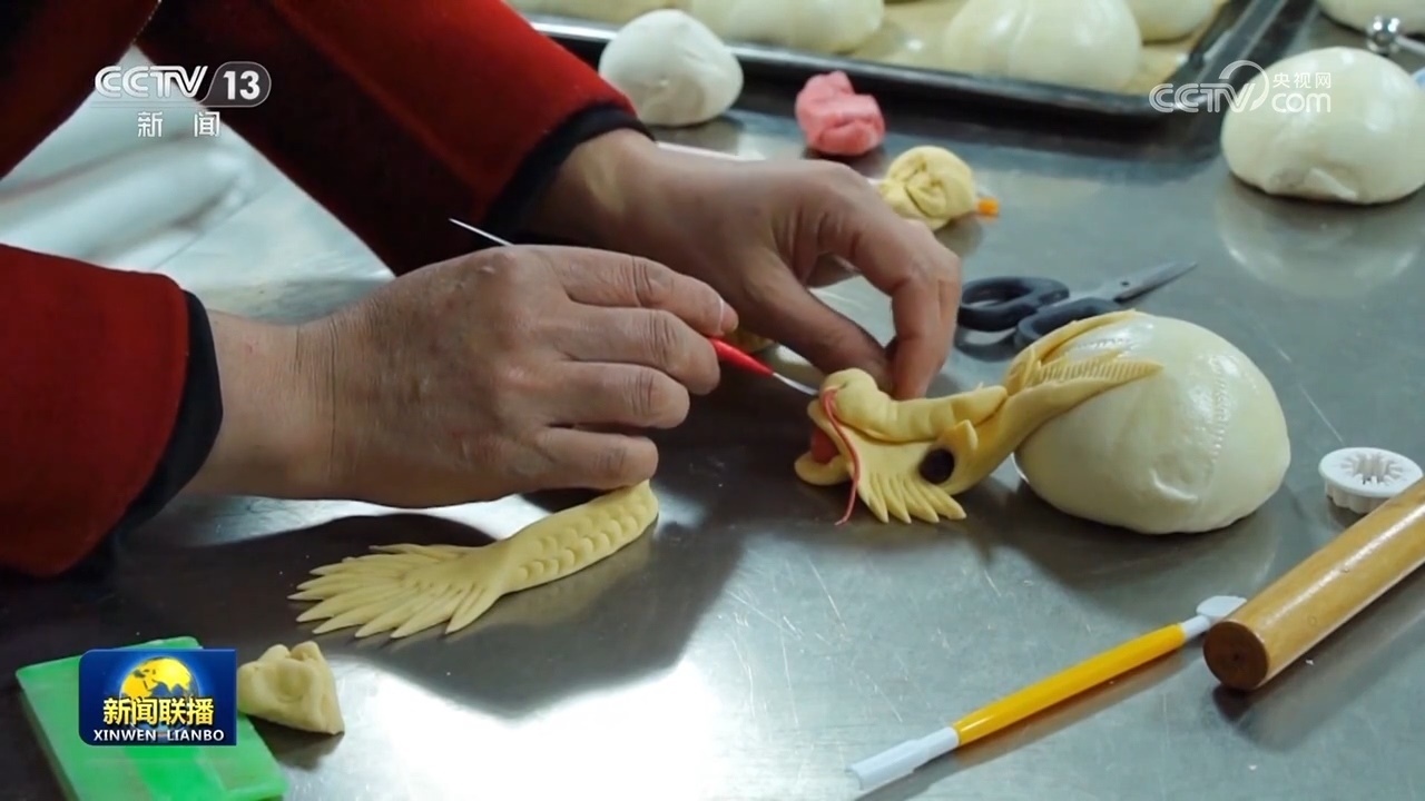 這幾天,黑龍江虎林、四川北川等地,人們蒸花饃,炸油馃,備年貨,好是熱鬧。在陜西韓城,一塊普通的面團(tuán),在村民的巧手里制作出一條條惟妙惟肖的“龍”造型花饃;在山西長(zhǎng)治,鄉(xiāng)親們聚在一起,揉面、捏花,熱氣騰騰的棗饃為春節(jié)增加了甜蜜和喜慶。在遼寧沈陽(yáng),家家戶戶發(fā)面烀豆餡,包出的圓滾滾的黏豆包,寓意著新年蒸蒸日上。在甘肅張掖,大家忙著炸麻花、炸油馃,制作各式各樣的特色春節(jié)美食。