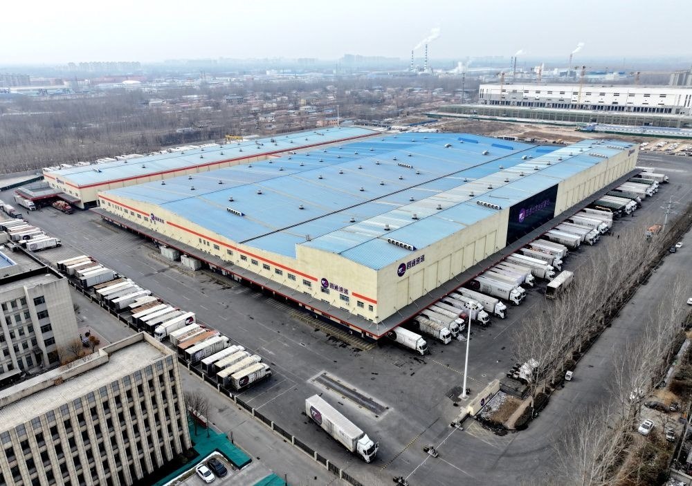 2024年2月4日拍攝的河北永清經(jīng)濟(jì)開發(fā)區(qū)的圓通速遞北方總部基地(無人機(jī)照片)。新華社記者 王曉 攝