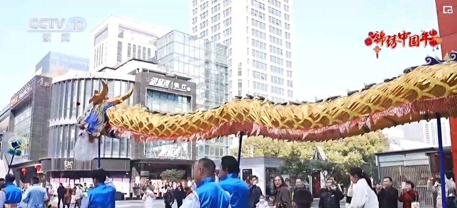 在浙江杭州,一場(chǎng)熱鬧的舞龍巡游活動(dòng)將全城的過年氛圍拉滿。這條50多米長的“臨安水龍”,來回穿梭于杭州各大商圈,做出“水中戲珠”“戲水搏浪”,盤、滾、游、翻等高難度動(dòng)作。最有特色的,是龍身翻舞時(shí)會(huì)帶動(dòng)藍(lán)綢翻滾,呈現(xiàn)出“金龍騰躍于碧浪中”的壯觀景象。龍身盤旋時(shí),還會(huì)秀一把噴水絕活,寓意著龍年順風(fēng)順?biāo)?br>