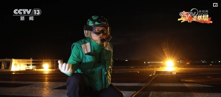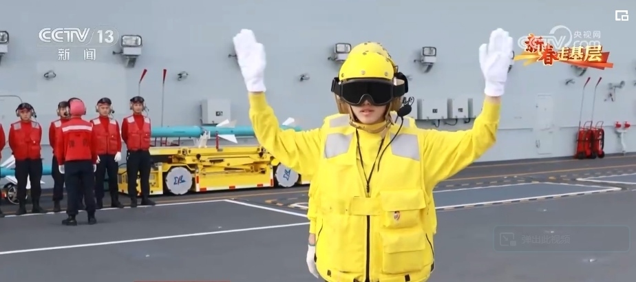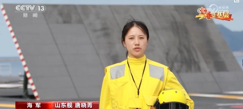 引導員唐曉菁的工作是負責引導艦載機就位、起飛。由于甲板上設備眾多,她的一舉一動都至關重要,戰(zhàn)機起飛時,她的戰(zhàn)位距離飛機發(fā)動機只有不到20米。