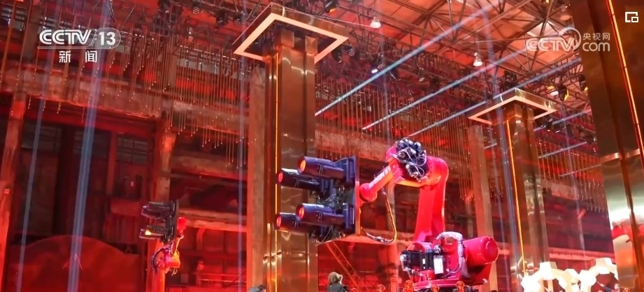2024年中央廣播電視總臺(tái)春節(jié)聯(lián)歡晚會(huì)遼寧沈陽(yáng)分會(huì)場(chǎng)上的8個(gè)重載工業(yè)機(jī)器人,原本是生產(chǎn)線上的重載工業(yè)機(jī)器人.春晚沈陽(yáng)分會(huì)場(chǎng)導(dǎo)演組到達(dá)沈陽(yáng)進(jìn)行第一次調(diào)研時(shí),就有了將這些機(jī)器人融入到舞臺(tái)的念頭。