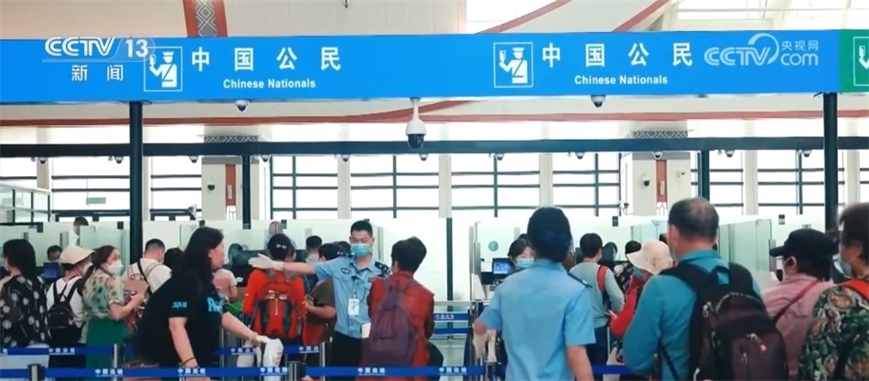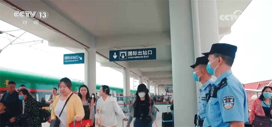 在磨憨站,出入境人員熙熙攘攘,異常熱鬧,來自不同國家和地區(qū)的旅客有序通過國際安檢區(qū)并經(jīng)海關(guān)查驗(yàn)后,在磨憨邊檢站鐵路口岸執(zhí)勤專班民警指引下排隊(duì)、核驗(yàn)證件,順利通關(guān)。