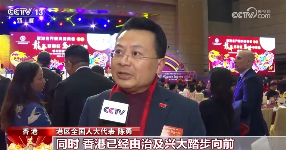 港區(qū)全國人大代表 陳勇:很多香港的朋友到內(nèi)地(或)留在香港共度一個歡慶的龍年,同時,香港已經(jīng)由治及興大踏步向前,同時還助力強(qiáng)國建設(shè)和民族的復(fù)興。