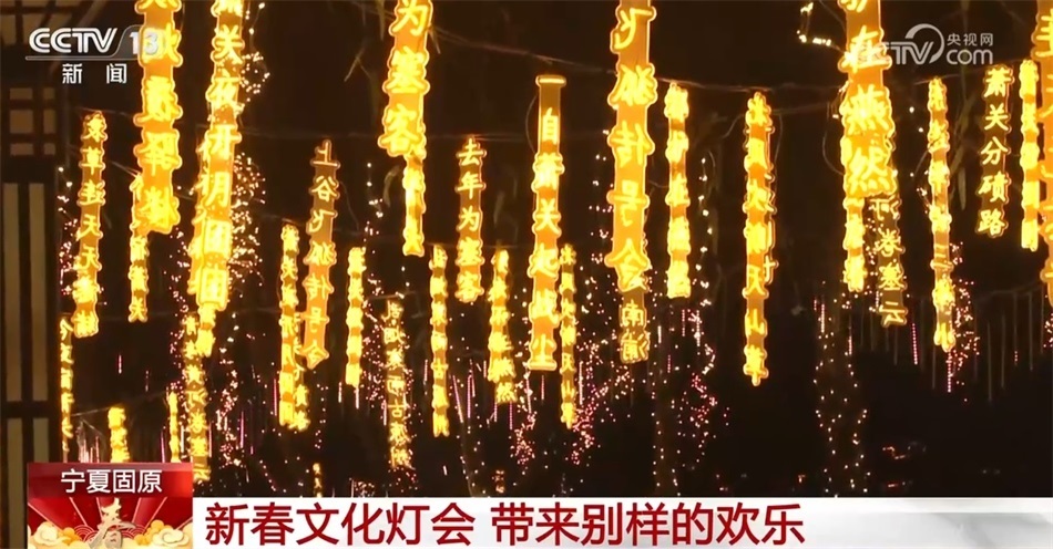 在寧夏固原的“西湖公園”內(nèi),一場以詩詞花燈、主題花燈為主的新春文化燈會給當?shù)匕傩諑韯e樣的歡樂。
