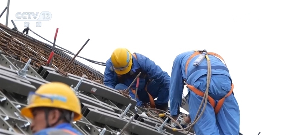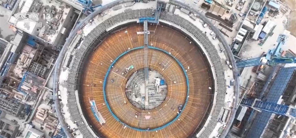 總臺央視記者 吳天白:在“華龍一號”太平嶺1號機組的最高點穹頂,我們可以看到幾十位工作人員正在加緊施工,他們今天的主要工作是對已經(jīng)完成安裝的穹頂鋼筋進行檢查驗收。現(xiàn)場工作人員告訴我,別看穹頂面積有5個籃球場這么大,他們的工作都是以毫米為單位的精細活。