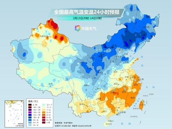 中央氣象臺(tái)預(yù)計(jì),13日夜間至15日,受較強(qiáng)冷空氣影響,長(zhǎng)江中下游及其以北地區(qū)將自北向南先后出現(xiàn)4~6級(jí)偏北風(fēng),陣風(fēng)6~9級(jí);氣溫普遍下降4~8℃,部分地區(qū)降溫10~12℃,東北地區(qū)局地降溫14℃以上。