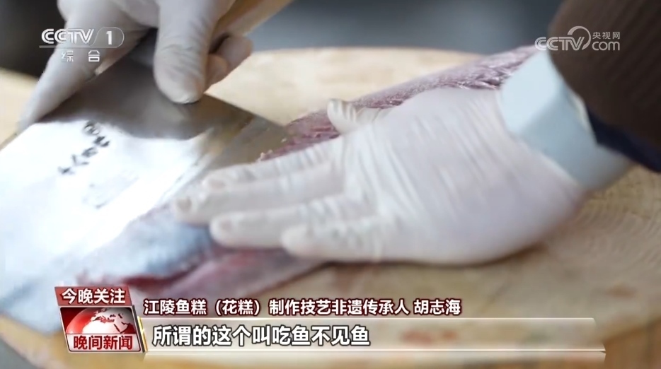江陵魚糕(花糕)制作技藝非遺傳承人 胡志海:我們把這個(gè)魚紅全部要給它剔干凈,打出來的魚糕才會特別的潔白。剔干凈了之后,我們要把這個(gè)魚刺給它給剔掉。所謂的這個(gè)叫吃魚不見魚,也有魚糕香。
