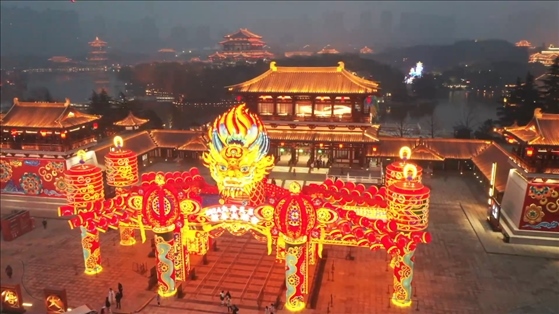 春節(jié)期間,西安大唐芙蓉園新春燈會(huì)流光溢彩,“祥龍迎春”“龍鳳呈祥”“百鳥(niǎo)朝鳳”……一盞盞花燈形態(tài)各異。