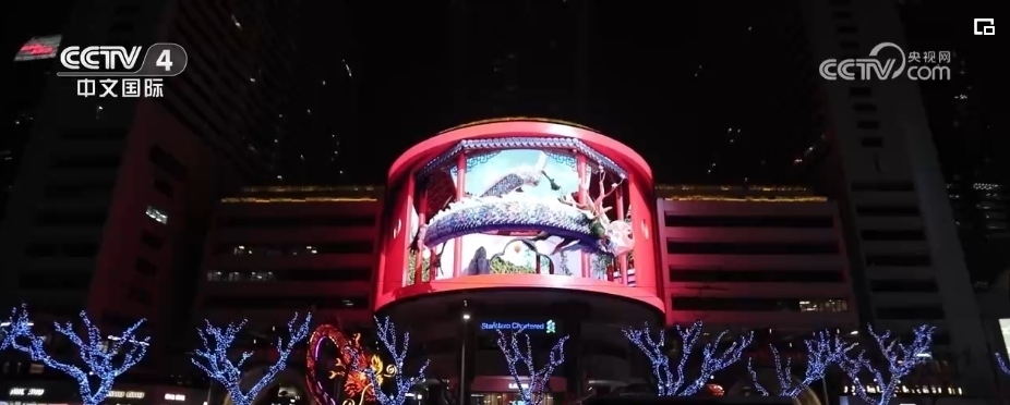 隨著夜幕降臨,在上海市南京西路這家商場戶外大屏,在裸眼3D技術(shù)的加持下,一條靈動時尚的“光影巨龍”騰飛而出。同時,上海南京西路商圈的多個地標建筑,也開啟了春節(jié)燈光演繹。