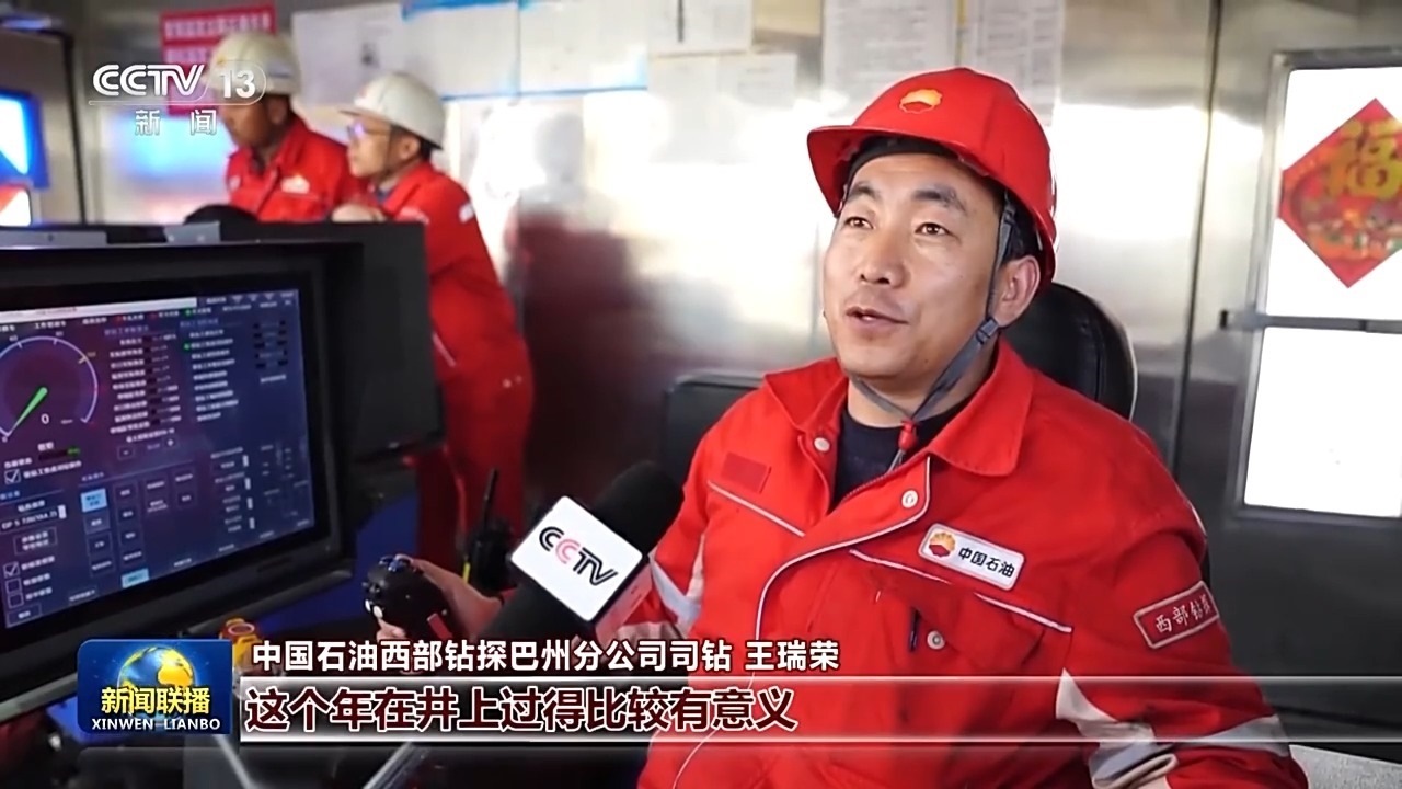 中國石油西部鉆探巴州分公司司鉆 王瑞榮:這個年在井上過得比較有意義,因為每打一米進尺就是一個新的亞洲紀錄在誕生。自己參與到其中,感覺挺自豪的。