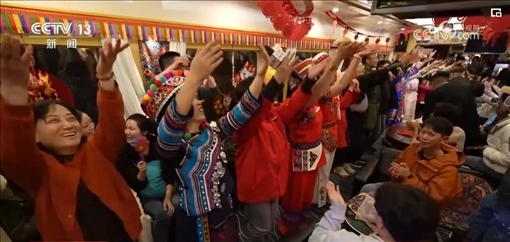 就在記者采訪時(shí),列車員邀請(qǐng)大家去一號(hào)車廂參加一個(gè)聯(lián)歡會(huì)。春節(jié)爆滿的車廂,讓他們也感受到了濃濃的年味兒。