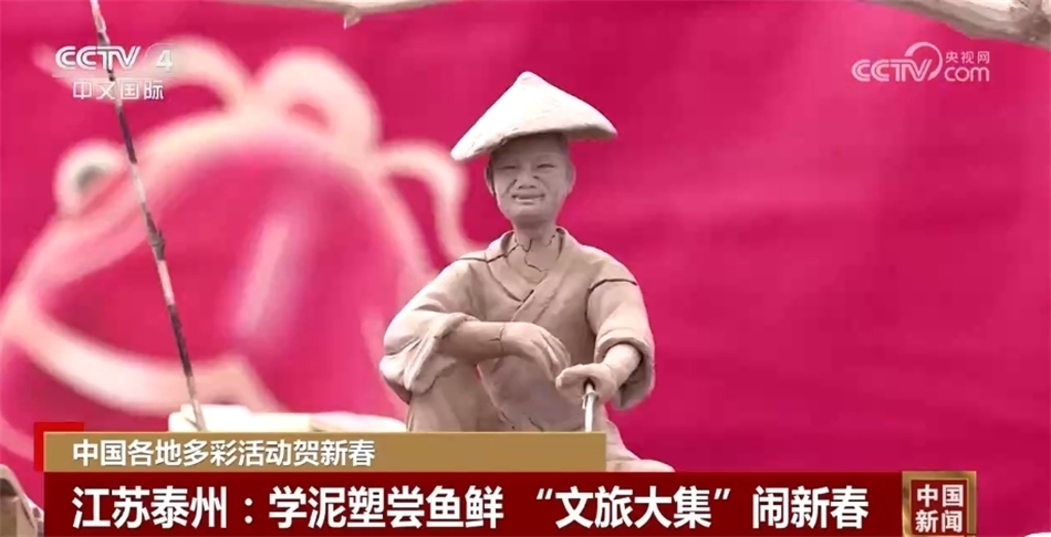 春節(jié)期間,江蘇泰州興化市舉辦了新春“文旅大集”活動。在現(xiàn)場,除傳統(tǒng)花船、舞龍等民俗表演外,當(dāng)?shù)啬嗨芊沁z傳承人還帶來了蟠龍、漁船、漁具等雕塑作品,游客在老師們的指導(dǎo)下也學(xué)起了雕刻泥塑。此外,大集上還能品嘗到新鮮水產(chǎn)品加工成的魚圓、魚頭湯,讓大家“年年有余”,圖個好彩頭。