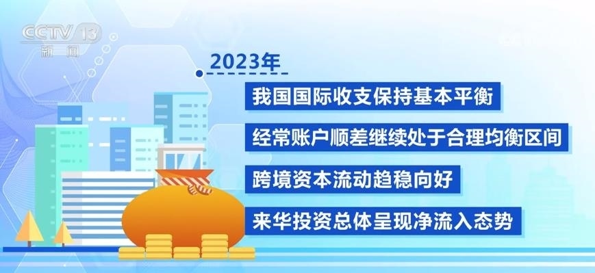 2023年,我國國際收支保持基本平衡,經(jīng)常賬戶順差繼續(xù)處于合理均衡區(qū)間,跨境資本流動趨穩(wěn)向好,來華投資總體呈現(xiàn)凈流入態(tài)勢。