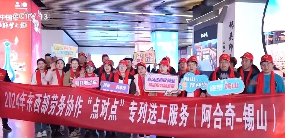 在江蘇無(wú)錫,用工企業(yè)早早來(lái)到火車站口,迎接首批新疆務(wù)工人員的到來(lái)。“點(diǎn)對(duì)點(diǎn)”大巴車將員工直接送到企業(yè)門口。