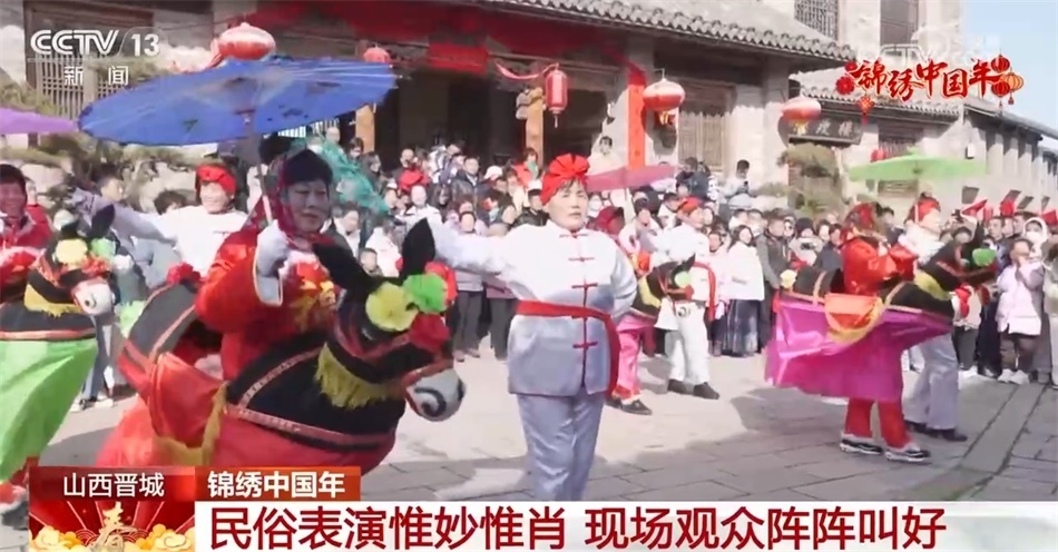 在山西晉城澤州縣大陽(yáng)古鎮(zhèn)景區(qū),演員身著色彩鮮艷的古裝,伴著歡快熱鬧的小調(diào),自編自演的民俗表演輪番登場(chǎng),擔(dān)花籃、劃旱船等特色傳統(tǒng)民俗節(jié)目演繹得惟妙惟肖,贏得現(xiàn)場(chǎng)觀眾陣陣叫好。