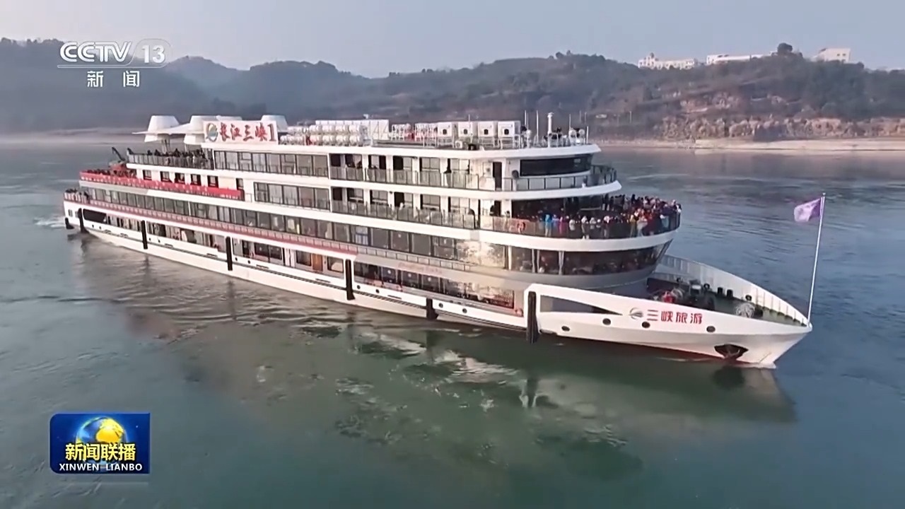 在長(zhǎng)江上,全球載電量最大的純電動(dòng)游輪“長(zhǎng)江三峽1”號(hào),大年初二滿載1300名游客開啟龍年首航?!傲阄廴?、零排放”游長(zhǎng)江,成為新年新時(shí)尚。