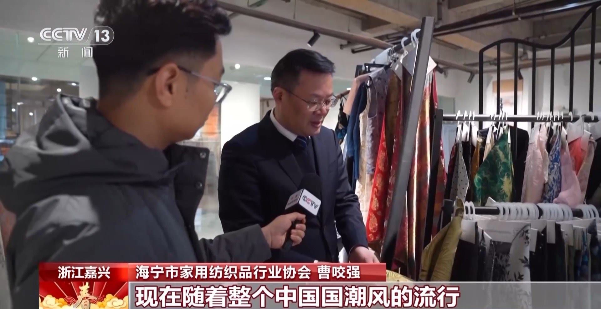 除了生產(chǎn)馬面裙布料,當(dāng)?shù)仄髽I(yè)還在生產(chǎn)開發(fā)國(guó)風(fēng)服飾面料。馬面裙引領(lǐng)的中國(guó)風(fēng)時(shí)尚新潮流,也受到海外消費(fèi)者的喜愛。