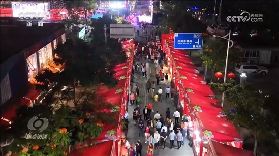 今年春節(jié)期間,配合“村VA”的排球比賽,當?shù)卦谂徘蝠^旁邊設置了年貨節(jié),展銷當?shù)氐奶厣唐?。看完比賽來吃美食,讓游客們直呼過癮。