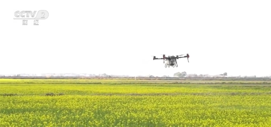 在江西省南昌市新建區(qū)的這個(gè)稻油輪作示范基地,金黃的油菜花競相開放?;êI峡?,無人機(jī)在專業(yè)人員的操控下,均勻地將肥料和農(nóng)藥噴撒至油菜田間,為油菜提供生長的能量和養(yǎng)分,抑制病菌繁殖,提高油菜結(jié)莢率及產(chǎn)量。