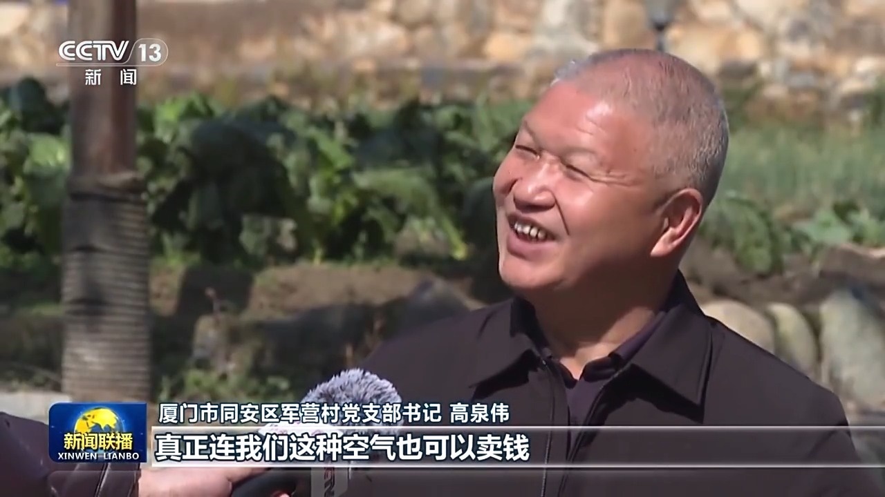 廈門市同安區(qū)軍營(yíng)村黨支部書記 高泉偉:真正連我們這種空氣也可以賣錢,我們茶園所生產(chǎn)的這些碳匯,已經(jīng)賣出去了兩次了。