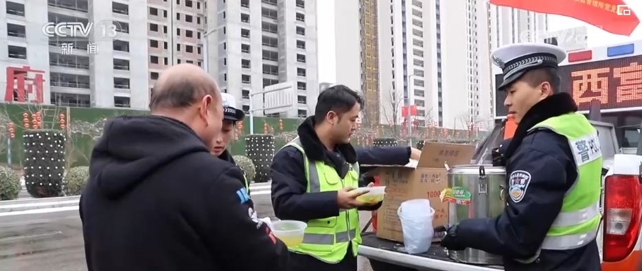 到了飯點(diǎn),當(dāng)?shù)叵嚓P(guān)部門為滯留的司乘人員送來(lái)飯菜,保障大家滯留期間的基本生活需求。