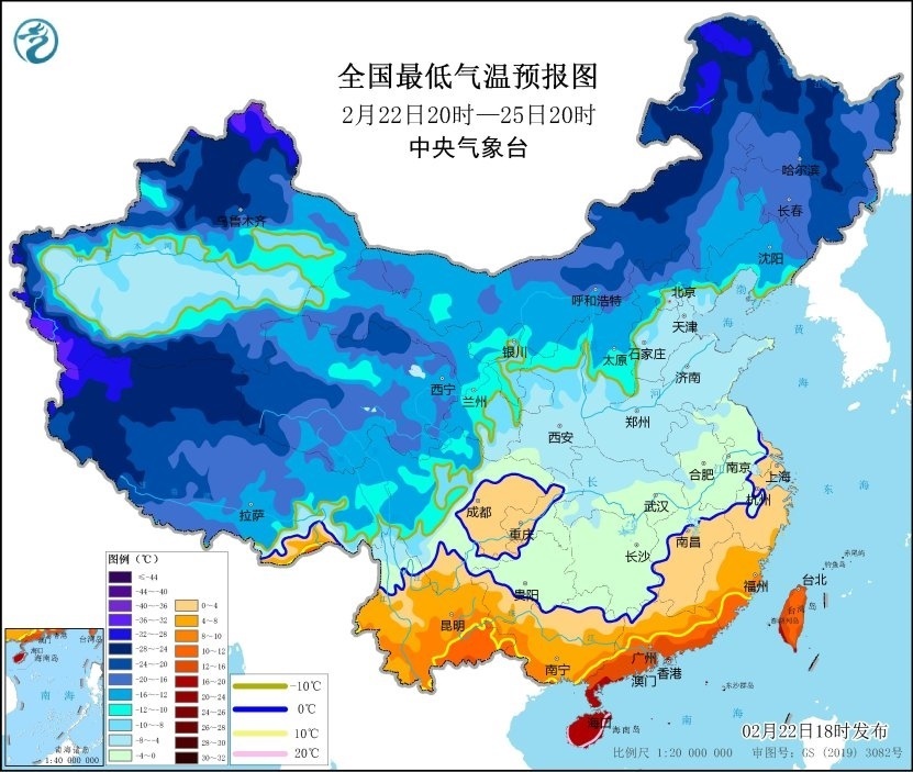 央視網(wǎng)消息:中央氣象臺2月22日18時發(fā)布低溫黃色預警,未來一周,我國大部地區(qū)氣溫將持續(xù)偏低。預計,2月22日20時至25日20時,黃淮、江淮、江漢、江南大部、華南中北部、西南地區(qū)東部以及陜西南部、新疆沿天山地區(qū)、西藏西部等地的日平均氣溫較歷史同期偏低5℃以上,其中江漢、江淮西部、江南中西部、華南北部、貴州中東部等地的日平均氣溫較歷史同期偏低7℃以上,最低氣溫0℃線將位于貴州南部、廣西北部、江西北部一帶。