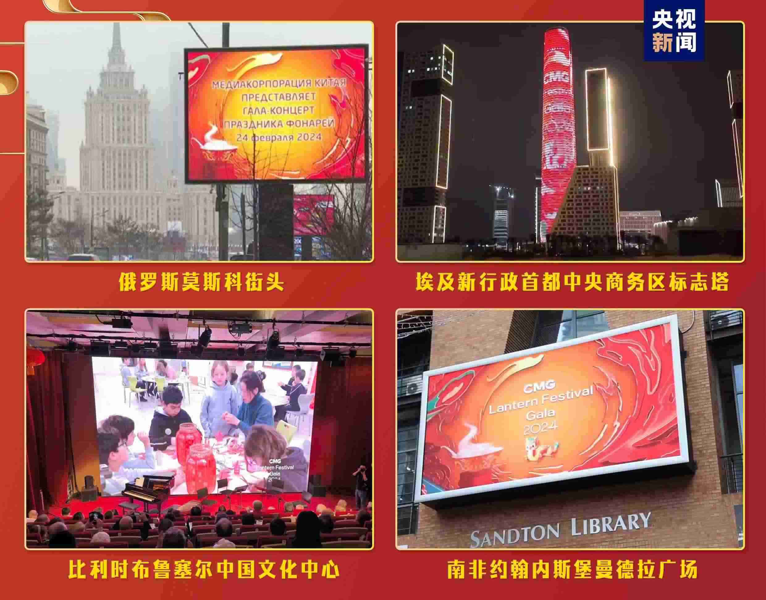 “海外千屏”持續(xù)閃耀,跨越山海點亮全球地標。充滿濃郁中國年味兒的《2024年元宵晚會》宣傳片登陸美國、德國、意大利、俄羅斯、南非、巴西、阿聯(lián)酋等全球17個國家、25座城市的2627塊戶外大屏和院線銀幕。意大利米開朗琪羅廣場、非洲第一高樓——埃及新行政首都中央商務區(qū)標志塔等地標大屏亮起“中國紅”,帶當?shù)孛癖姵两礁惺苤袊?jié)日的喜慶氛圍。