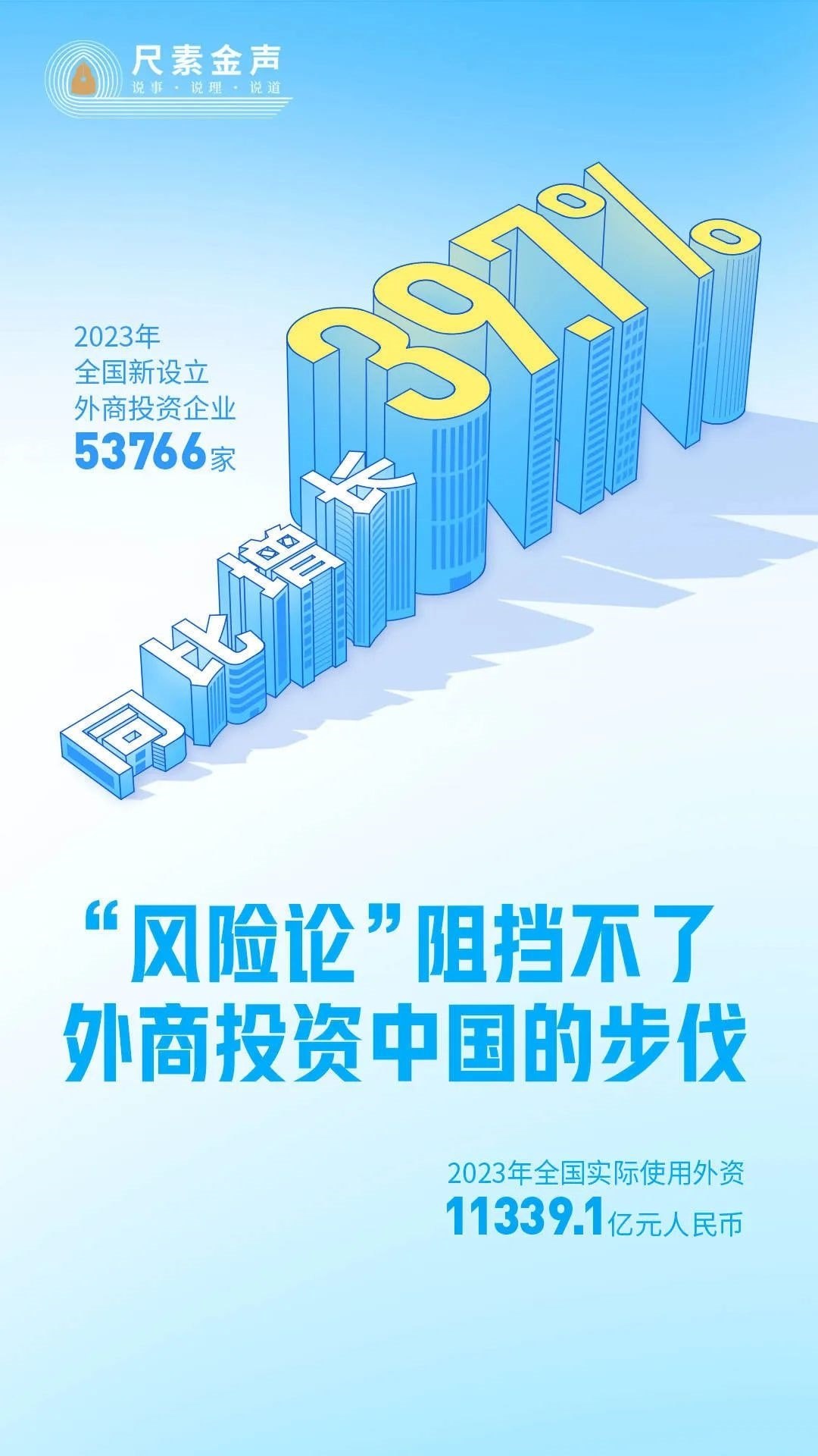 事實證明,任何抹黑誤導(dǎo)都阻擋不了外商來華投資步伐,中國制造展現(xiàn)出的強大韌性、活力和潛力,不會因花樣翻新的“唱衰”論調(diào)而改變。2023年,全國實際使用外資金額11339.1億元人民幣,仍處歷史高位;全國新設(shè)立外商投資企業(yè)53766家,同比增長39.7%。中國一直都是外商投資興業(yè)的沃土。