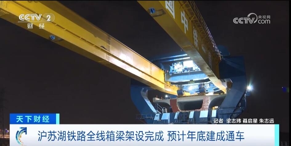 3月4日凌晨,隨著最后一榀長(zhǎng)度32.6米、重量726噸的箱梁成功架設(shè)到橋墩上,滬蘇湖鐵路箱梁架設(shè)全部完成。