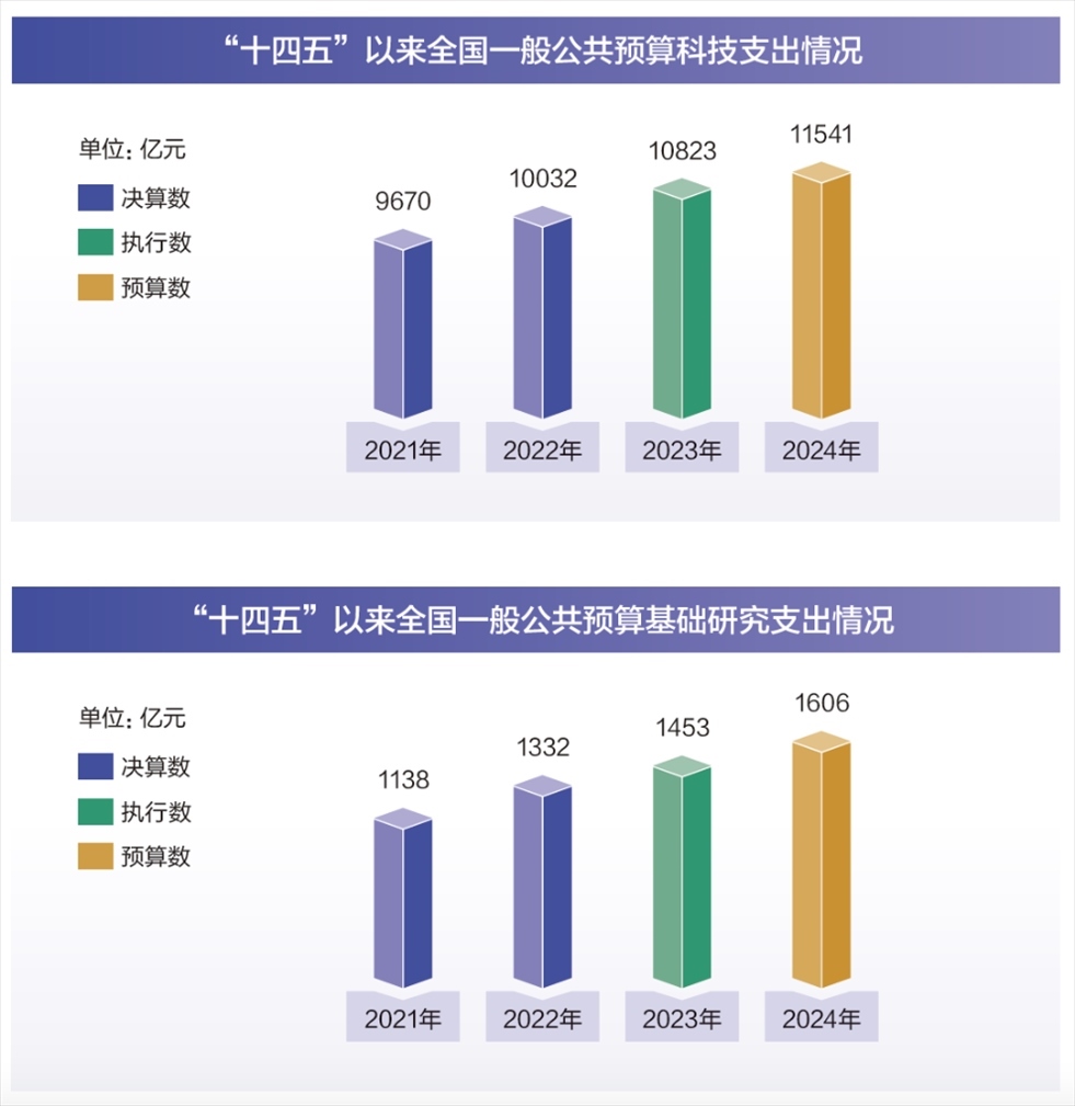堅持把科技作為財政支出重點領(lǐng)域。2021年至2023年,累計安排全國財政科技支出3萬億元。今年,全國一般公共預算科技支出及基礎(chǔ)研究支出規(guī)模將進一步增長。