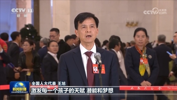 來自湖南長沙雅禮中學(xué)的全國人大代表王旭,表示教育是培育希望的事業(yè),讓孩子今天的興趣愛好變?yōu)槊魈烊松l(fā)展的優(yōu)勢。
