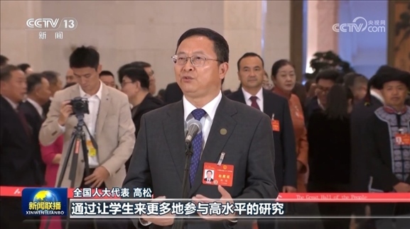 談及高等教育如何培養(yǎng)學(xué)生的創(chuàng)造力和促進(jìn)學(xué)生的全面發(fā)展,作為中山大學(xué)校長的全國人大代表高松表示,面對未來,我們需要培養(yǎng)學(xué)生的學(xué)習(xí)力、思想力和行動(dòng)力,從而形成創(chuàng)造力。
