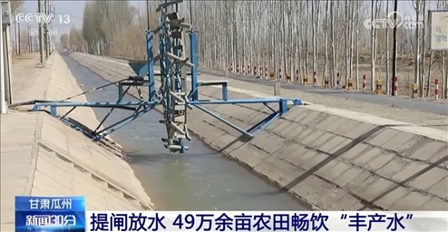 在甘肅瓜州,隨著疏勒河流域灌區(qū)引水閘閘口開(kāi)啟,各灌區(qū)陸續(xù)提閘放水,讓49萬(wàn)余畝農(nóng)田按時(shí)足量喝上開(kāi)春“豐產(chǎn)水”。