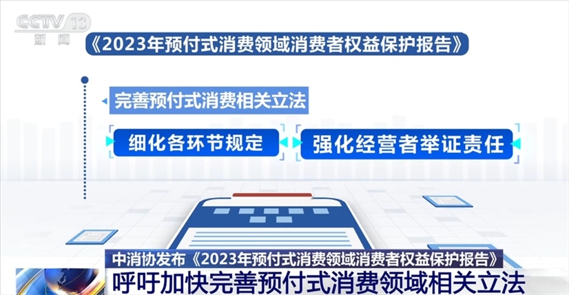 央視網(wǎng)消息:中國消費者協(xié)會3月12日發(fā)布《2023年預(yù)付式消費領(lǐng)域消費者權(quán)益保護報告》(以下簡稱《報告》),呼吁加快完善預(yù)付式消費領(lǐng)域相關(guān)立法,強化經(jīng)營者的舉證責(zé)任,落實對違法經(jīng)營者的信用約束和懲戒措施。