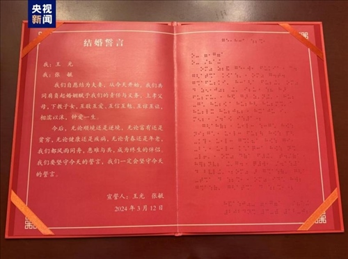 ·我國視障人士首次使用無障礙格式文件完成結(jié)婚登記。