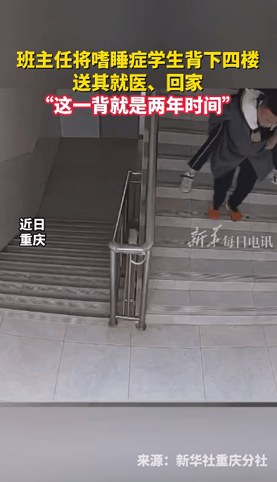 重慶墊江中學(xué)初二班里有位留守同學(xué)患有“嗜睡癥”,常常一睡不醒。老師們試過捏鼻子、用冷水巾擦臉、輕拍臉頰,多種方式都不奏效,最嚴(yán)重時(shí)一周會發(fā)作兩三次。每次他一睡不醒時(shí),班主任徐龍軍都會把他從四樓寢室背下來,送他回家或就醫(yī),這一背就是兩年。